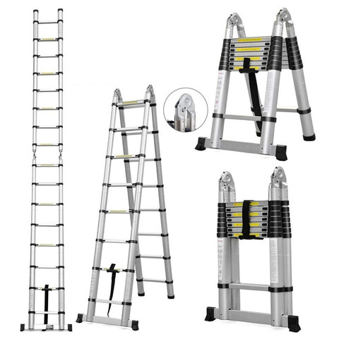 3.2 מ' 4.4 מ' 5 מ' 6 מ' מתקפל קל לאחסון מדרגה קומפקטית מתקפלת סולם טלסקופי אלומיניום רב תכליתי לגג רכב